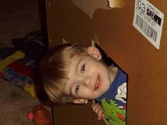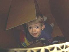 Playing in his box house