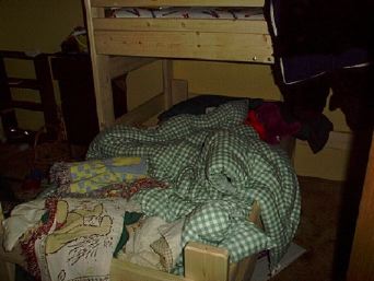 New loft bed. Look closely for the little foot of a sleeping little boy.