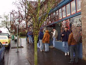 As I rounded the corner from 39th onto Burnside, I thought that I would be really disappointed if the line stretched for a block or more. It didn't. Evidently Pearl Jam fans aren't as fanatic as REM fans. Or maybe they're smart and join the fan club where they can get good deals on good seats. Or so I have heard.