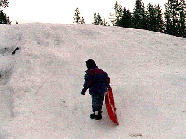 At the restaurant before we went sledding the first day.