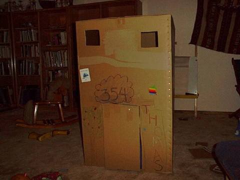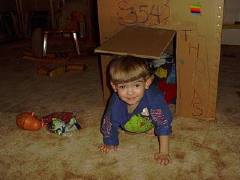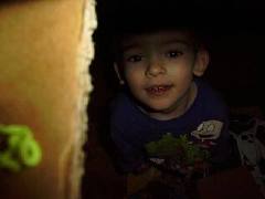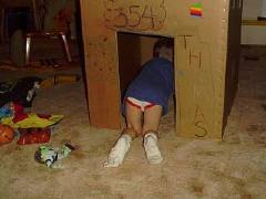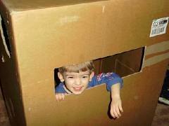 Playing in his box house