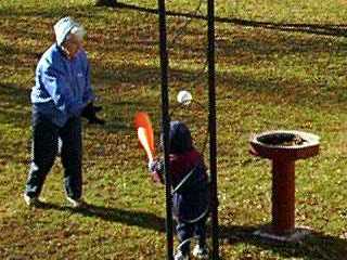 Grandma shows Thomas the home run swing...