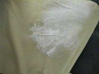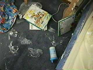 | The corner of our bed. Completely caked in cream. | Various objects that received the application. |