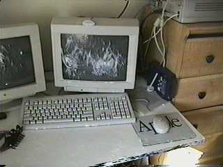 | Tina's desk chair. Monet-esque almost. | Tina's computer. I had to remove all the keys from the keyboard. |